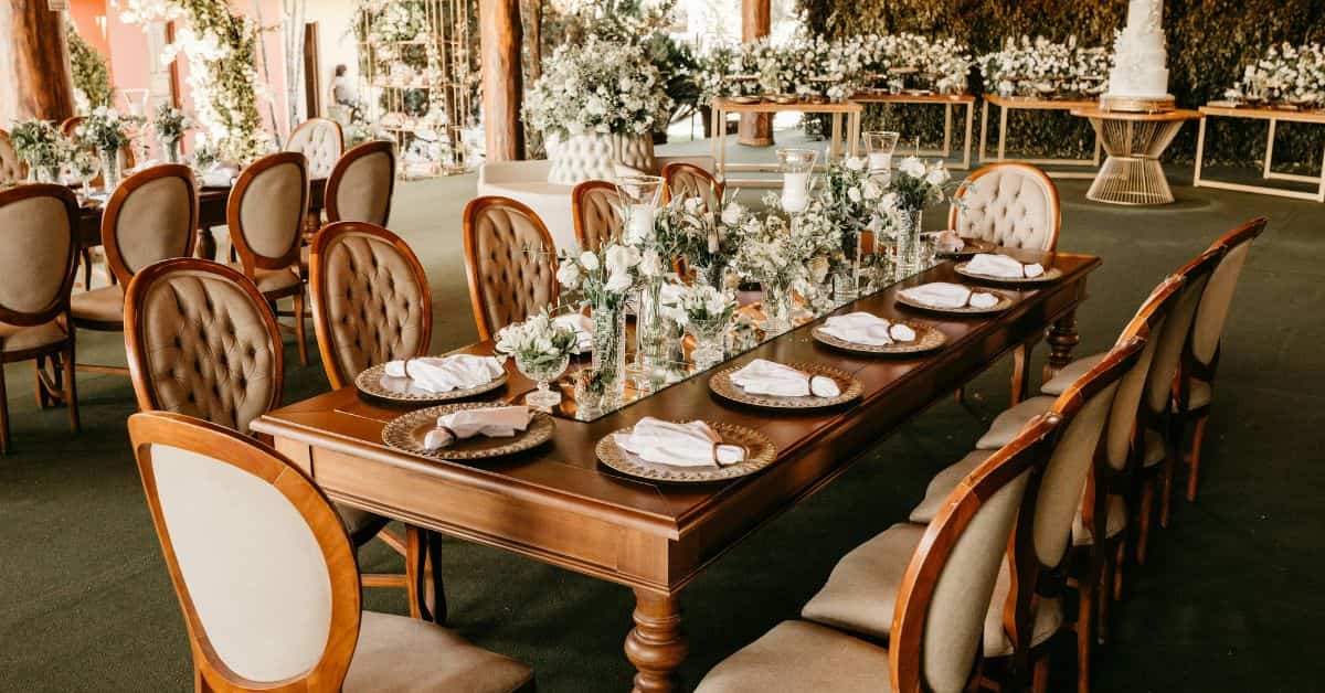 เทคนิคจัดโต๊ะอาหารให้ดูหรูในงานเลี้ยงที่บ้านขั้นต่อไป คือ การจัดโต๊ะและเก้าอี้ให้เหมาะสมกับจำนวนแขกที่มา โดยประเมินว่าโต๊ะและเก้าอี้นั่งได้พอดี เพื่อให้แขกทุกคนรู้สึกไม่อึดอัดเกินไป สามารถทานอาหารได้อย่างสบายใจ โดยควรเผื่อพื้นที่ระหว่างที่นั่งอย่างน้อย 60-70 เซนติเมตร สำหรับการเคลื่อนไหว หรือลุกออกจากที่นั่ง หากโต๊ะหรือเก้าอี้ไม่พอก็อาจจำเป็นต้องจัดหามาเพิ่มเติม